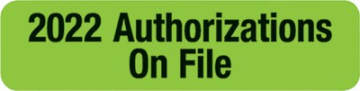 Medical Arts Press Patient Record Labels; 2022 Authorization on File, Large, Fluorescent Green,1 ...